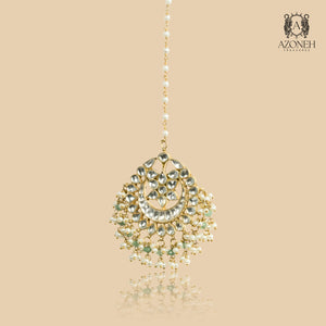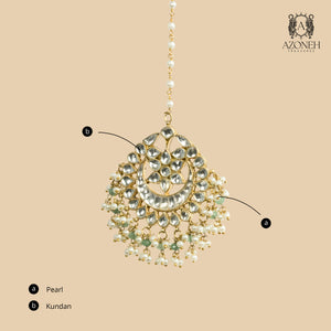 Timeless, graceful, and endlessly bridal — this tikka is pure tradition wrapped in elegance. The kundan craftsmanship carries that heirloom glow, like jewellery passed through generations with love and pride. Pearl detailing adds softness, bringing a moonlit serenity to the face, perfect for brides who want a delicate yet regal statement. The circular silhouette sits beautifully at the centre parting, framing the eyes and enhancing facial symmetry in the most flattering way. Wear it with ivory, blush, gold, or classic reds — it belongs to every era, every ritual, every memory. Chaand Riwaayat Tikka