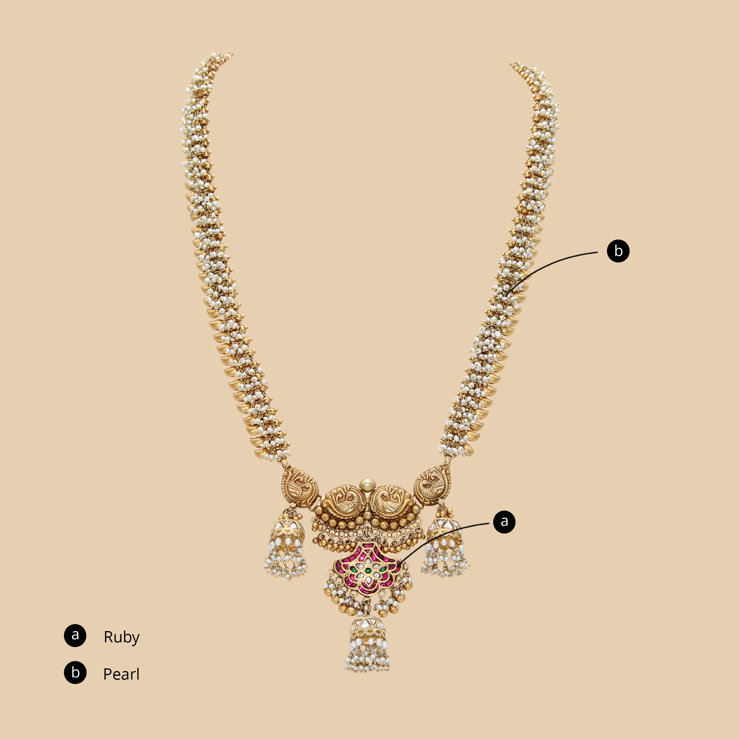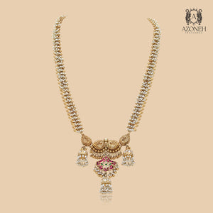 The Noor Kanti necklace sparkles like a cascade of morning dew,