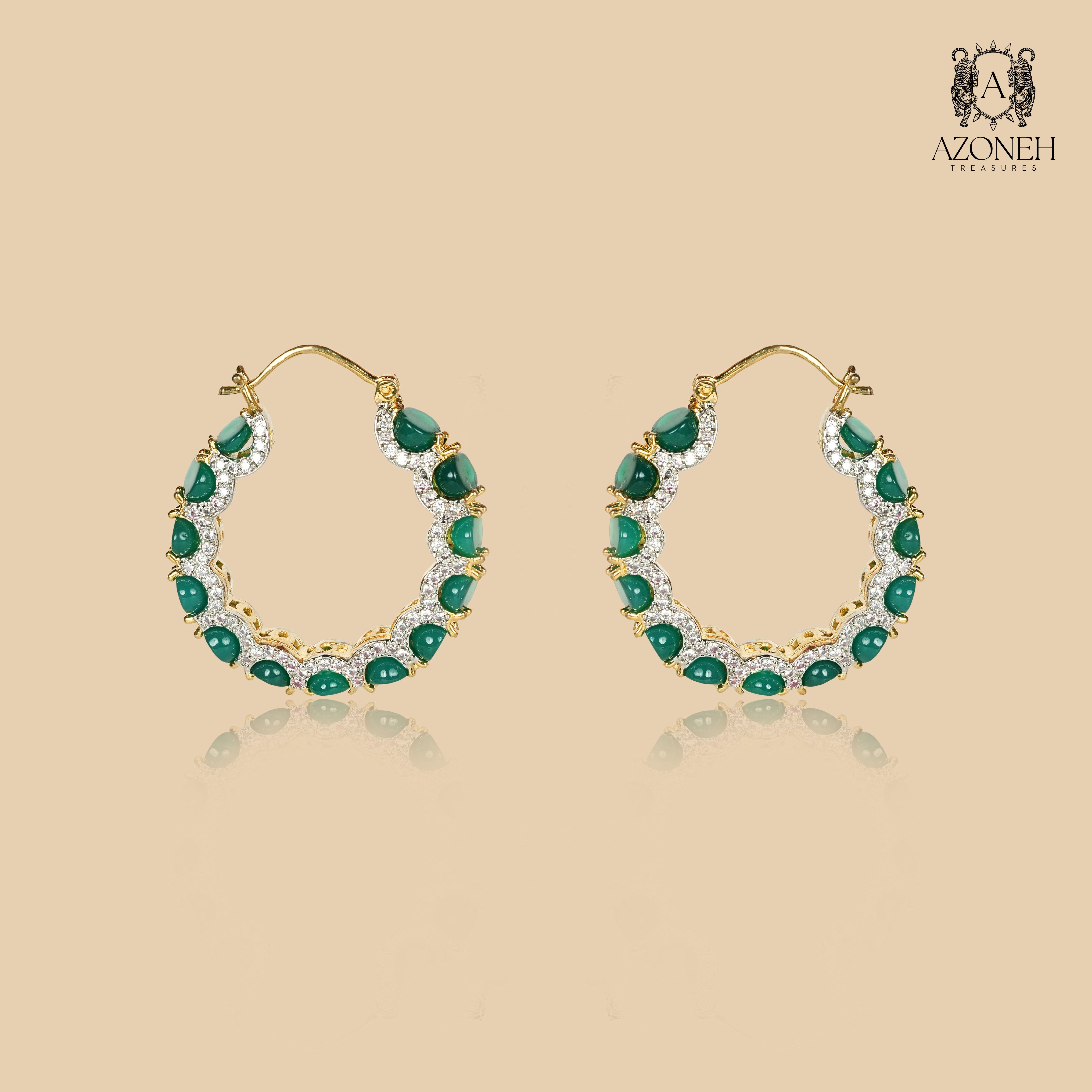 Elevate your elegance with the Pavir Earrings, a stunning fusion of vibrant zircon and coloured gems in a classy hoop design. These earrings encapsulate the essence of modern glamour Perfect for both day and night, the Pavir Earrings are more than an accessory —they’re a celebration of your unique style and spirit. Step into the spotlight and let your beauty shine. These earrings are a must-have for any fashion-forward individual. The blend of dazzling zircon and vivid colored gems creates a stunning effect that exudes sophistication. Whether you're dressing up for a special occasion or looking to add a touch of glamour to your everyday wardrobe, the Pavir Earrings are the perfect choice. Elevate your elegance and make a statement with these beautiful earrings.