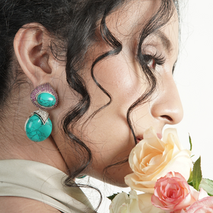 The Roohi Earrings embody the serene beauty of turquoise skies, with delicate drops of firoza that cascade elegantly. These stunning earrings bring a refreshing splash of color to any look, capturing the calm and tranquility of nature. Designed to flow with your every movement, the Roohi Earrings are perfect for those who love to make a subtle yet striking statement. Let their serene charm elevate your style, whether for a casual day or an evening to remember. Transform any outfit into a calming oasis with the serene beauty of turquoise skies embodied in the Roohi Earrings. Delicate drops of firoza cascade elegantly with your every movement, making a subtle yet striking statement that captures the calm and tranquility of nature. Let their stunning design elevate your style, whether for a casual day or an evening to remember. Experience the subtle yet powerful benefits of these extraordinary earrings.