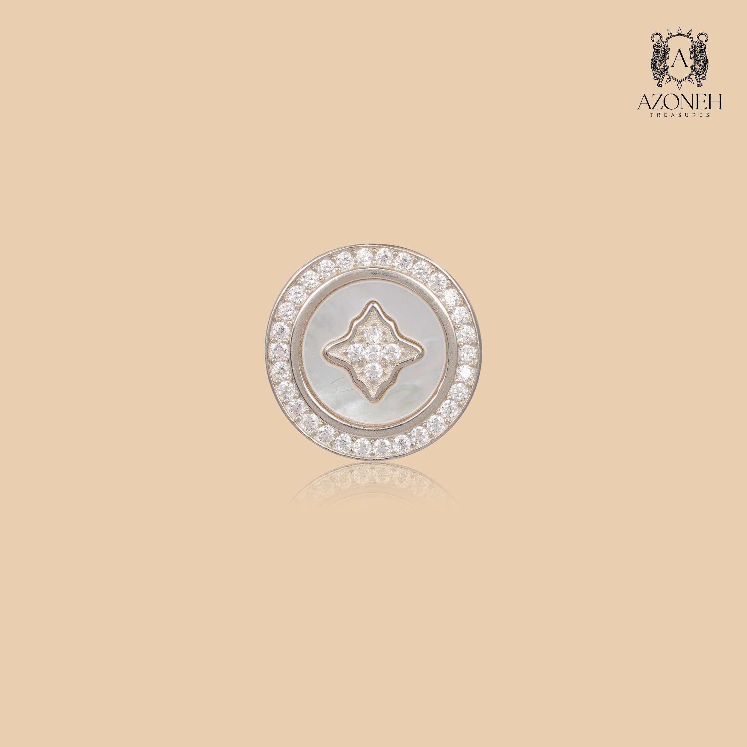 The Ivory Regent button gleams with the soft sheen of pristine pearl white,
