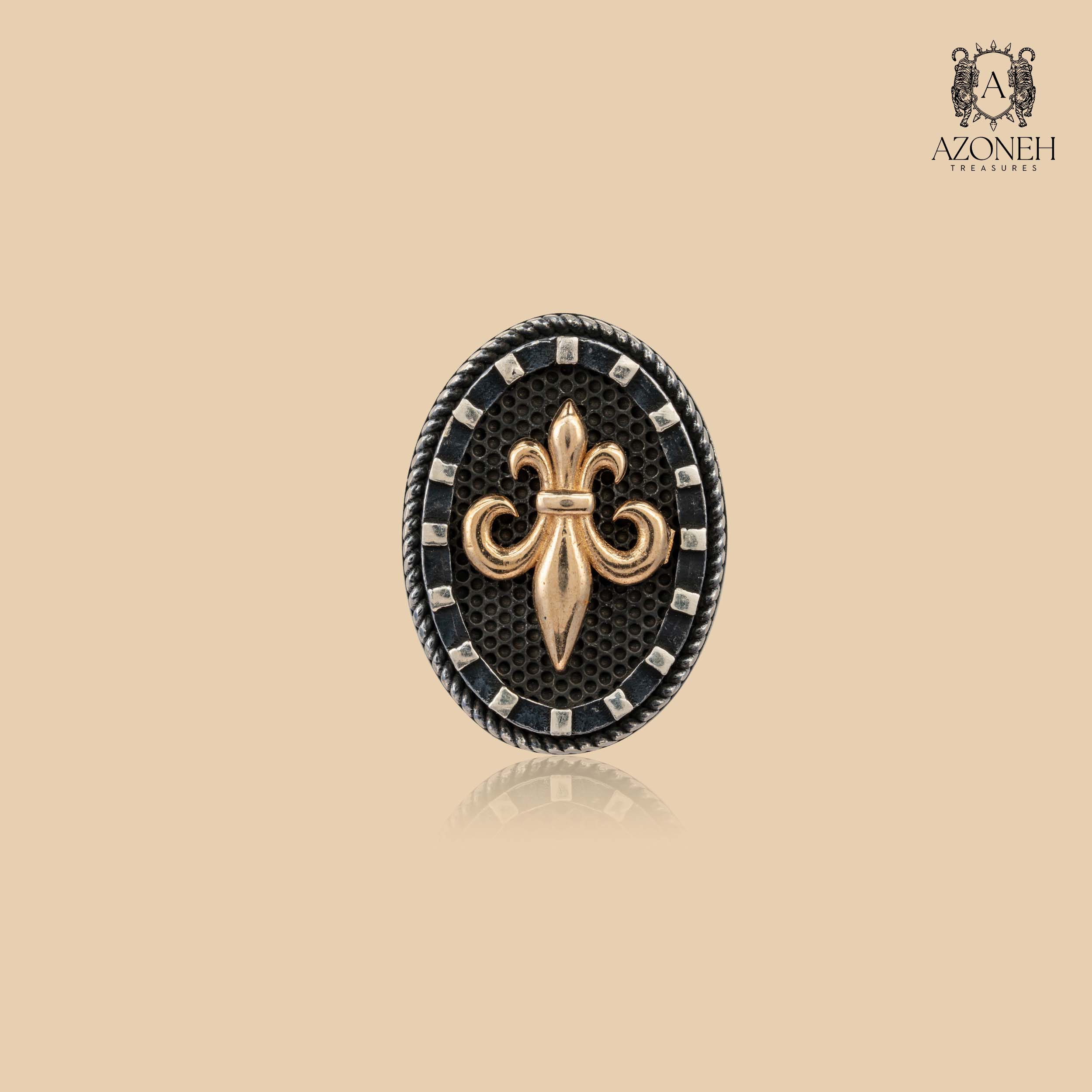 The Rajan Emblem commands attention with its deep black enamel canvas,
