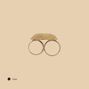 Virangana is bold and fierce, a ring designed for women who embody courage. Its statement design feels regal, with a strong silhouette that commands attention. The ring carries echoes of warrior queens and royal courts, making it perfect for festive occasions where drama is welcome. Virangana pairs beautifully with layered jewelry and makes a powerful bridal piece for those who want to break away from convention. This is a ring that doesn’t just accessorize; it empowers. A tribute to feminine strength, Virangana belongs to the woman who steps into every room with poise, power, and undeniable presence.