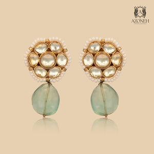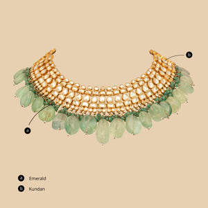 The Dewdrop Cascade Necklace captures the splendor of raindrops shimmering on golden vines. Soft, translucent green beads are interwoven with clusters of kundan, evoking early morning freshness. Paired with elegantly matched earrings, this necklace drapes the neck in gentle brilliance and refined sophistication. Its delicate arrangement channels both tradition and contemporary grace, making it perfect for bridal, festive, or special celebrations. Designed to complement pastels and earth tones, every glance reveals new detail and sparkle—ensuring the wearer carries a sense of serene, garden-inspired radiance wherever she goes.