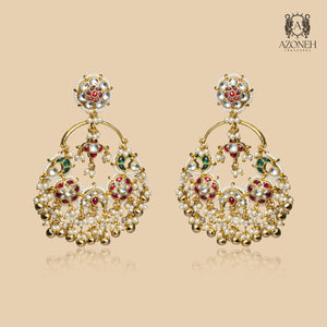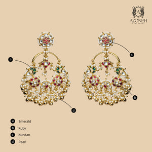 These earrings feel like royalty reimagined — light enough to be effortless, yet detailed enough to look priceless. The open hoop silhouette frames the face beautifully, while ruby touches add a romantic glow like festive laughter, and emerald accents bring depth like moonlit gardens. Kundan craftsmanship gives it that antique, heirloom richness, and pearls add softness and movement like gentle blessings. This pair is made for women who love statement jewellery but want it graceful, not heavy. Wear it with sleek hair, deep necklines, and confidence that doesn’t need validation. Gulshan-e-Roya Hoops