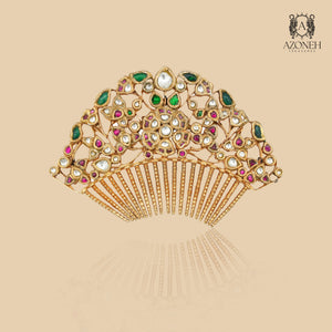 We imagine this statement Jooda Kanghi worn well with reds and muted colors in your jooda for a modern look, and it would look equally stunning paired with our Inayat necklace and earrings as a feature piece of a bridal ensemble. Designed with versatility in mind, our Jooda Kanghi provides a modern touch of elegance to any outfit. It pairs beautifully with both bold, vibrant colors as well as softer, muted tones to elevate your style. Complete your bridal ensemble by pairing it with our Inayat necklace and earrings for a truly stunning look.