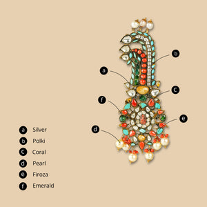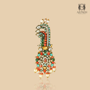 Introducing the Coral Maurya Kalgi – a regal piece adorned with vibrant coral, exuding royal elegance and grandeur. Designed to complement a Maharaja's crown or turban, this statement accessory symbolizes strength and prestige, perfect for those seeking a touch of tradition and majesty. Discover the regal and vibrant Coral Maurya Kalgi - a symbol of strength and prestige, designed to complement the grandeur of a Maharaja's crown or turban. With its elegant and traditional appeal, this statement accessory is perfect for those looking for a touch of royalty.