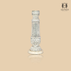 Handcrafted in pure silver, its slender form rises like a temple spire,