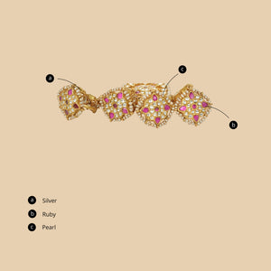 Delicately crafted with shimmering pearls and radiant gemstones,