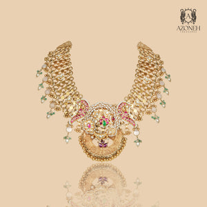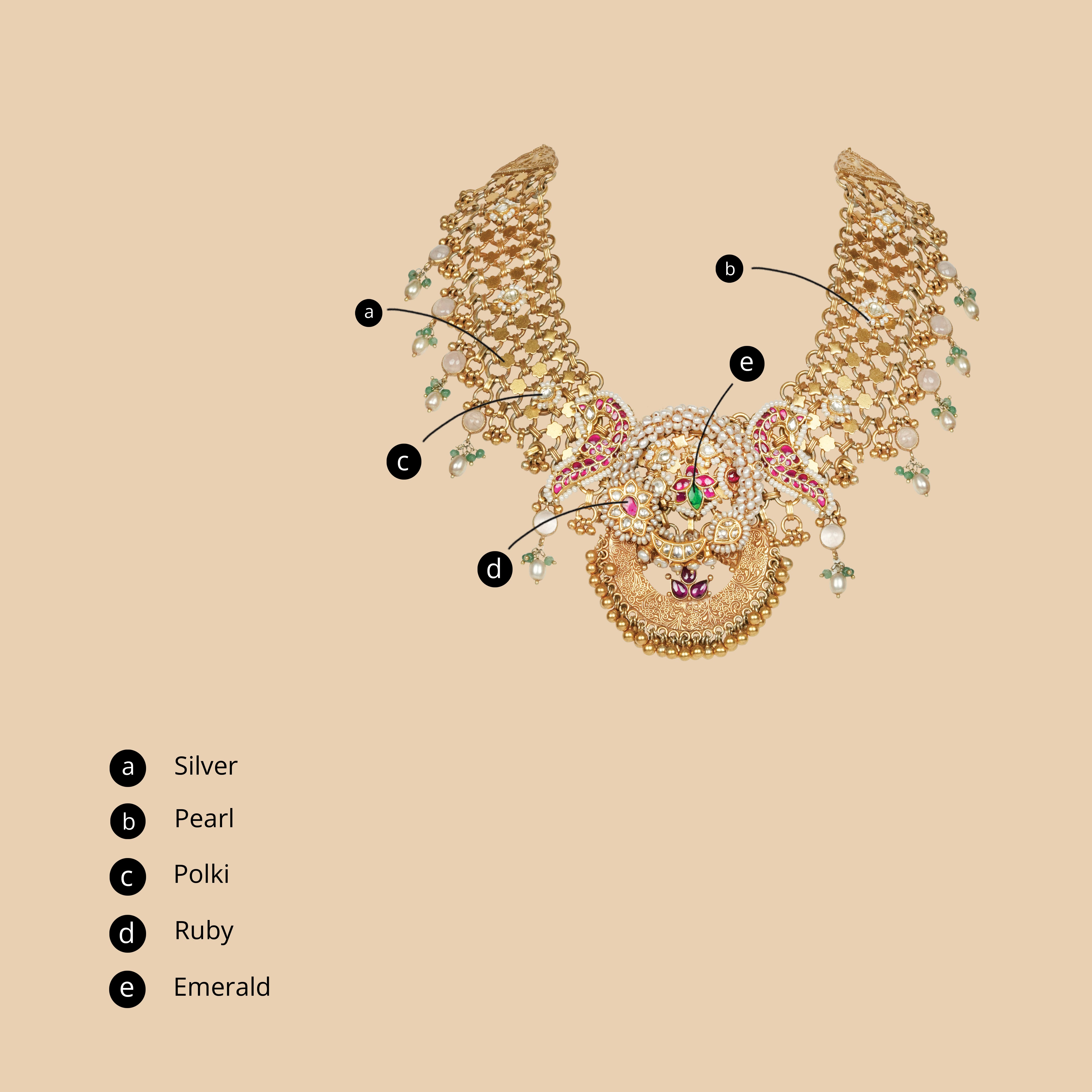 A whisper from the past, the Raha Necklace carries the essence of timeless beauty. Handcrafted in pure silver, each link of this masterpiece cradles the deep red fire of rubies and the lush green glow of emeralds, like treasures from a forgotten dynasty. Wearing it feels like stepping into a royal story, where every glance is drawn to the elegance draped around your neck. Perfect for wedding celebrations or a night to remember, this necklace isn't just an accessory—it's the crown jewel that transforms you into the queen of your own kingdom. Adorn yourself with the grace of eras gone by. Embodying the splendor of royalty, every inch of the handcrafted Raha Necklace is drenched in alluring rubies and emeralds, adding a touch of majestic charm to your attire. With such a masterpiece adorning your neck, you'll exude elegance and transform yourself into the queen of any occasion, whether it's a wedding or a night to remember. Channel the grace of past eras and make every head turn with this timeless beauty.