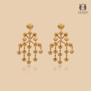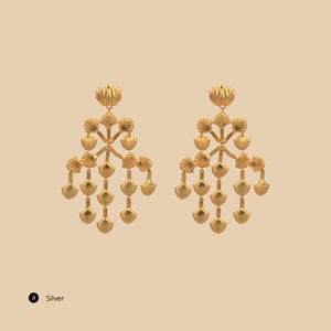 A sculptural homage to seashell reflections, the Regal Shell Earring features detailed curves and layered