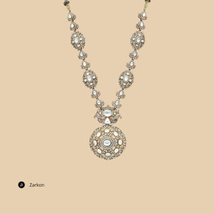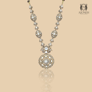 The Rewa Necklace redefines elegance with its bold and versatile design. Featuring a striking pendant adorned with shimmering polki strings, this piece is anchored by a sturdy silver base, perfectly blending traditional craftsmanship with contemporary flair. Ideal for men who appreciate refined accessories, this necklace makes a statement of strength and sophistication. Wear the Rewa Necklace to elevate your style, whether for a formal occasion or a casual outing. Elegance meets versatility in the Rewa Necklace. Crafted with traditional techniques and contemporary flair, this stunning piece features shimmering polki strings on a sturdy silver base. Perfect for the sophisticated man looking for refined accessories, this necklace exudes a sense of strength and style. Add a touch of sophistication to any outfit, whether it's a formal event or a laid-back outing. Elevate your look with the striking Rewa Necklace.