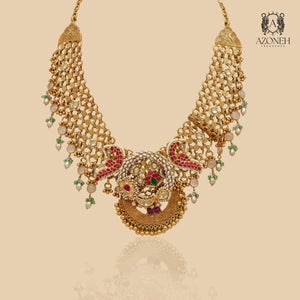 A delicate silver necklace that reminds one of colorful bazaars bustling with gilded trinkets, intricate porcelain, and artifacts that have witnessed centuries pass by—that is Sana for you! Handcrafted in silver, the Sana Necklace is like a little treasure box of the past to be cherished in the now. With delicate charms handcrafted in an unusual play of gold and silver, and dressed in cultured pearls, this necklace brings together the charm of the quaint with the design language of the contemporary. Evoke the beauty of bygone eras with the Sana Necklace. Handcrafted in silver and adorned with delicate charms featuring a unique mix of gold and silver, this necklace captures the essence of old-world charm while incorporating modern design elements. The cultured pearls add a touch of elegance to this treasure from the past, making it the perfect accessory for any occasion.