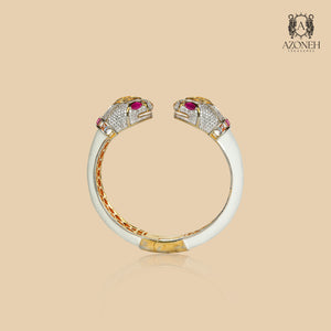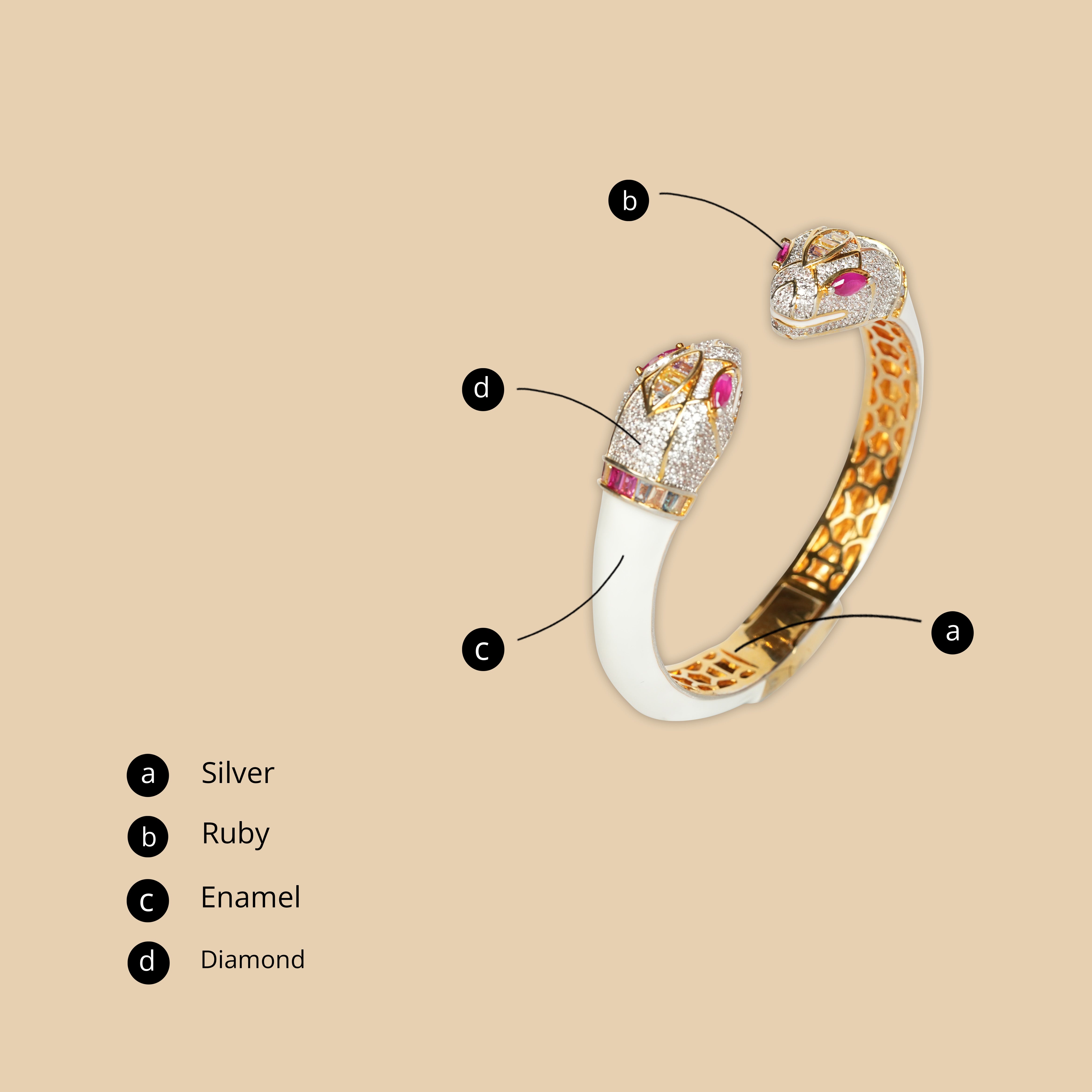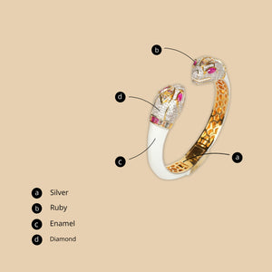 Minimal and sophisticated, the Serpiente Bracelet captivates with its unmatched beauty. This elegant kada-style bracelet features striking serpent heads on both ends, blending timeless design with a modern twist. A statement piece that effortlessly elevates any look. The Serpiente Bracelet is a stunning piece that combines classic design with contemporary elements. Featuring intricate serpent heads on both ends, this elegant kada-style bracelet makes a bold statement and adds a touch of sophistication to any outfit.