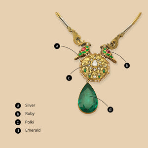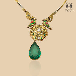 Simple yet sophisticated, the Shaheen Halsi epitomizes style, grace and elegance, dare we say... fit for a princess! The design highlights the sheer beauty of the creative tourmaline with a base and rim of gold. The carved gemstone is bordered by a solid black enamel with encased diamonds. It has a diamond-encrusted loop on top the Rory Gilmore pendant epitomizes style, grace and elegance, dare we say...fit for a princess! The design highlights the sheer beauty of the creative tourmaline with a base and rim of gold. The carved gemstone is bordered by a solid black enamel with encased diamonds. It has a diamond-encrusted loop on top Elevate your style with the Shaheen Halsi necklace. The creatively cut tourmaline with stunning gold accents is bordered by solid black enamel and diamonds, for a truly elegant and regal appearance. Invest in quality design that exudes grace and poise, making you feel like royalty every time you wear it.