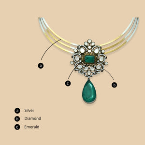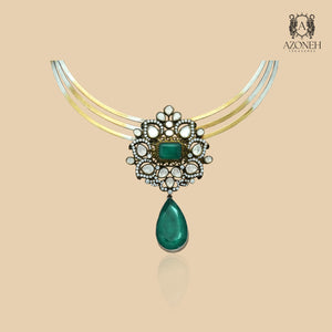 Our design ideology aims to celebrate Indian craft with a layer of sophistication and minimalism. With an aim to do just that, this concept, a long-time favorite, emerged from the archives of Azoneh's designs and here we are. Attached to the heart of the necklace is an emerald drop. Learn about the rich history of Indian craftsmanship with Sofia Necklace. Enjoy the sleek and elegant design while showcasing an exquisite emerald drop at the heart of the necklace.
