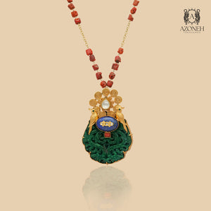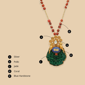 Our Soha Necklace is a classic Silver Pendant, dressed in symbolic Indian motifs with a contemporary interpretation. An elaborate contemporary Indian necklace centered around the majestic bird motif, dressed with polki/uncut diamonds using the traditional jadai technique. Discover the beauty and craftsmanship of India with our Soha Necklace. The elaborate design featuring traditional jadai and shimmering polki diamonds is a timeless treasure that celebrates the majesty of the Indian culture.