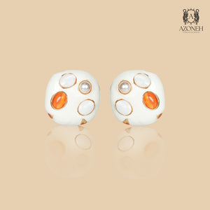 A striking pair of minimal studs, these earrings look playful yet sophisticated. Worked in enamel, a bed of varying cuts and colors of tooti-frooti gemstones gives this design a distinctive look. Achieve a playful yet sophisticated look with this striking pair of minimal studs. Made with enamel and a bed of varying cuts and colors of tooti-frooti gemstones, these earrings offer a unique and eye-catching design.