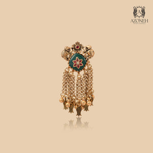 Vamika celebrates divine feminine power. Its design feels bold and protective, almost like a guardian for the wearer. The Vamika Ring is perfect for women who like strong, structured jewelry with presence. It pairs well with regal colors — deep maroons, forest greens, and gold-toned ensembles — making it a stunning choice for bridal looks or grand festivities. This ring feels empowering every time you wear it, a little reminder of your own inner goddess. Vamika is not just a jewel; it is a talisman of strength, a ring that makes you stand taller and feel unstoppable.