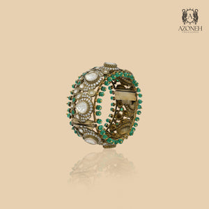 With their graceful form and intricate detailing, the Yuvika Bangles are a statement of heritage and style. These elegant bangles are designed to seamlessly blend with both traditional and modern attire, offering a refined touch to any ensemble with their delicate craftsmanship. The intricate detailing and graceful form of Yuvika Bangles are a testament to their heritage and style. Expertly designed to perfectly complement both traditional and modern attire, these elegant bangles add a refined touch to any ensemble with their delicate craftsmanship.